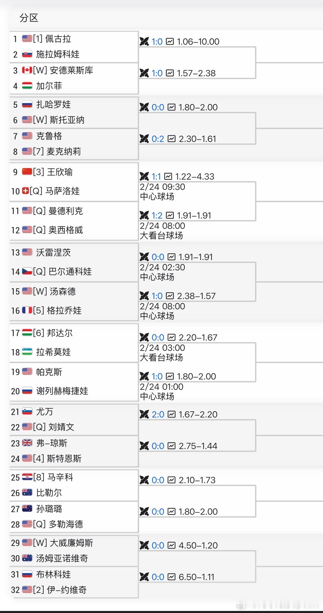 🇺🇸奥斯汀WTA250签表🇨🇳王欣瑜vs🇨🇭马萨洛娃[Q]