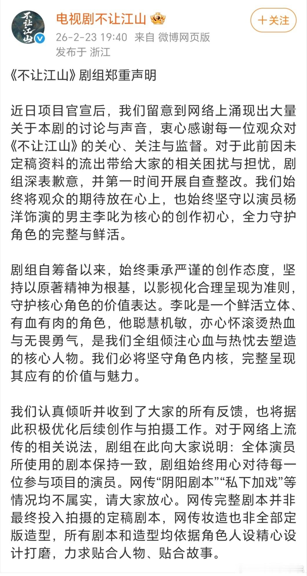 不让江山剧组发声明了