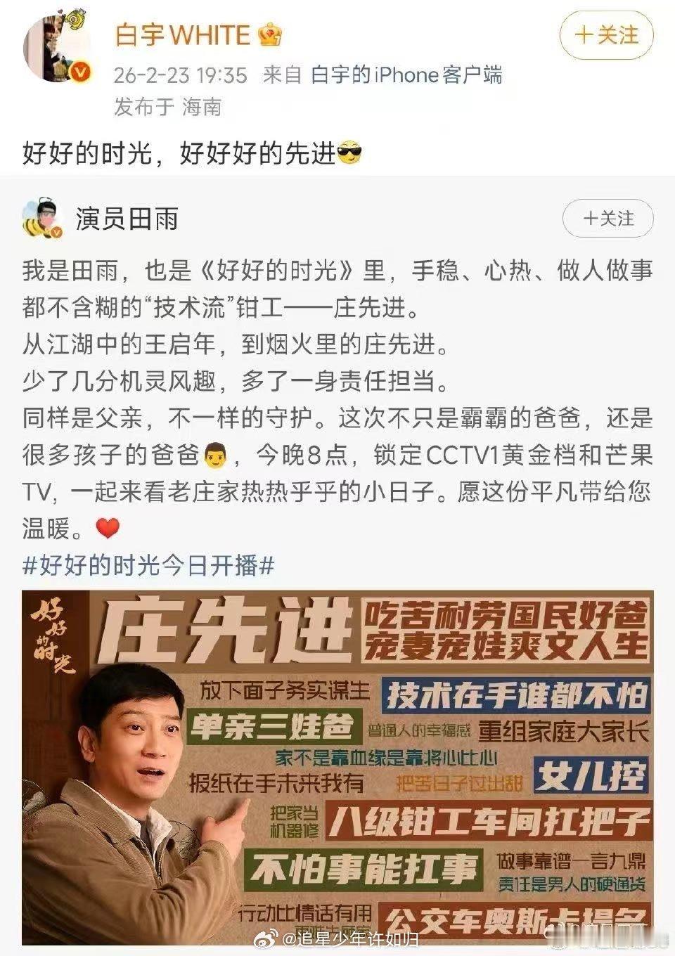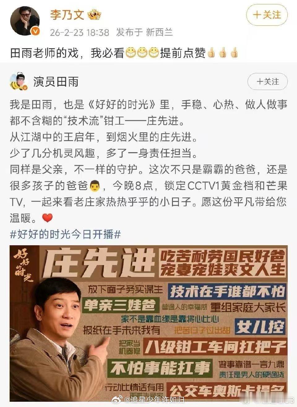 田雨内娱人缘 田雨新剧开播,大半个朋友圈都来营业了。黄渤于和伟李乃文倪妮白宇,一