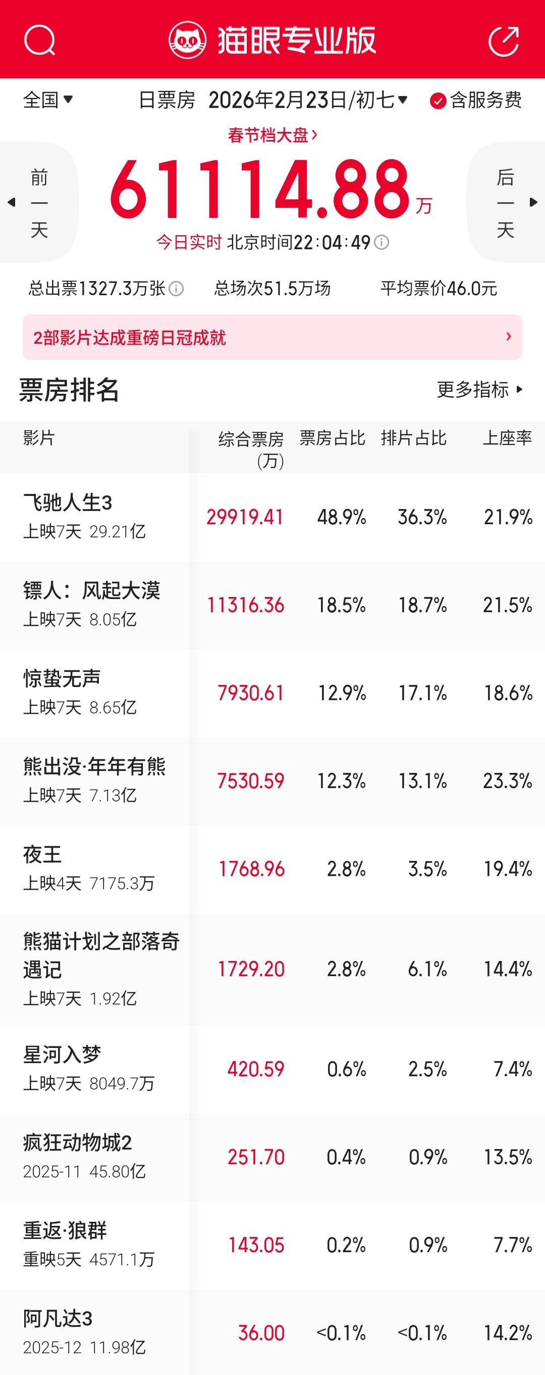 低迷但走势稳定的春节档结束,接下来看长线的后劲了。春节档到此为止