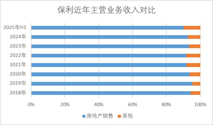 2025上半年,保利发展房地产外主营收入约114.17亿元,同比增长3.46%,占总营收比例已达到9.77%,接近10%。