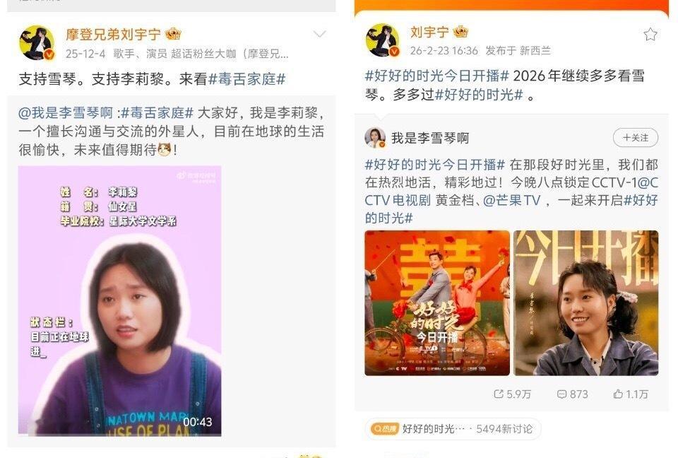 刚刷到刘宇宁粉丝发的,刘宇宁给李雪琴宣传几次剧,结果李雪琴一次也没帮刘宇宁宣传过