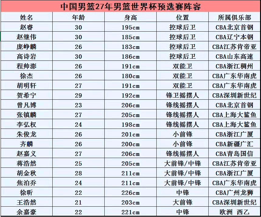 男篮:世界杯预选赛大名单与亚洲杯大名单对比!刚刚,中国男篮公布世界杯预选赛第二