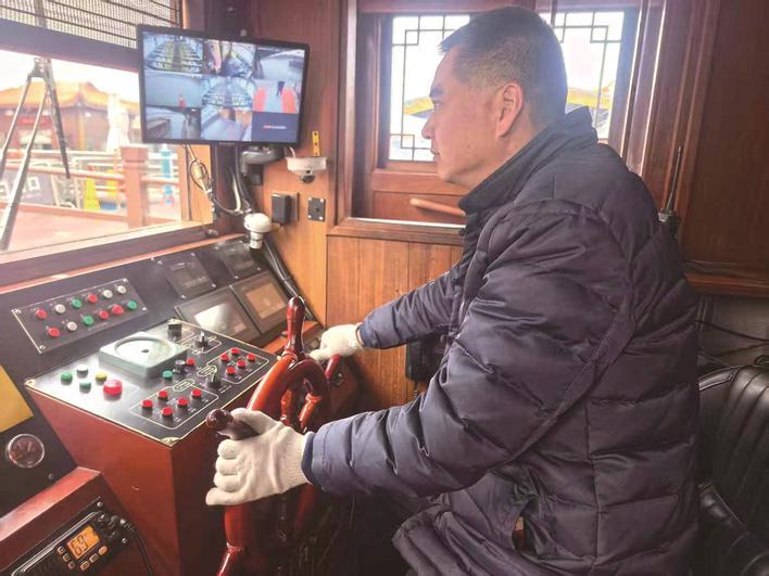 朱华秉是土生土长的嘉兴人,自2011年入职景区以来,几乎年年春节都坚守在岗。谈及无法完整陪伴家人,他坦言家人都十分理解支持。今天是大年初一,景区下午4点半停售游船票,他正好能赶回家,和家人吃上一顿热乎的晚饭。“一家人聚在一起吃个饭,就很好。”简单的话语,藏着最朴实的幸福。