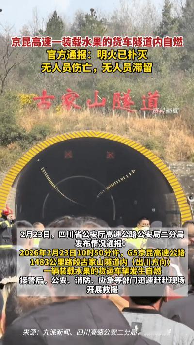 隧道惊魂!货车自燃,果香混焦烟弥漫…… 古家山隧道内,车辆正常通行间,一股刺鼻焦糊味突然裹挟着果香弥漫开来。后方货车轮胎猛然窜出明火,火势迅速蔓延,浓烟瞬间充斥整个隧道,应急灯光在烟雾中忽明忽暗。 消防救援队伍火速抵达,水龙直扑火点,消防员顶着浓烟与高温深入隧道内部,在刺鼻的焦味中奋力扑救。散落的苹果被烤得焦皱,甜腻与焦糊交织的气味,成了这场险情最揪心的印记。 隧道内外车流瞬间停滞,出川、入川双向道路排起长队,乘客透过车窗,只见隧道口浓烟滚滚如雾带,救援身影在其中穿梭不停。历经数小时紧张处置,明火彻底被扑灭,隧道恢复通行,路面只留下水渍、焦黑残骸与半片焦苹果皮。 货车司机望着烧毁的车厢与熏黑的货运单,满心懊悔。高速行车前的车况检查,你真的做到位了吗?车轮下的安全隐患,该如何及时排查规避? 高速隧道货车自燃 行车安全隐患排查 高速救援现场