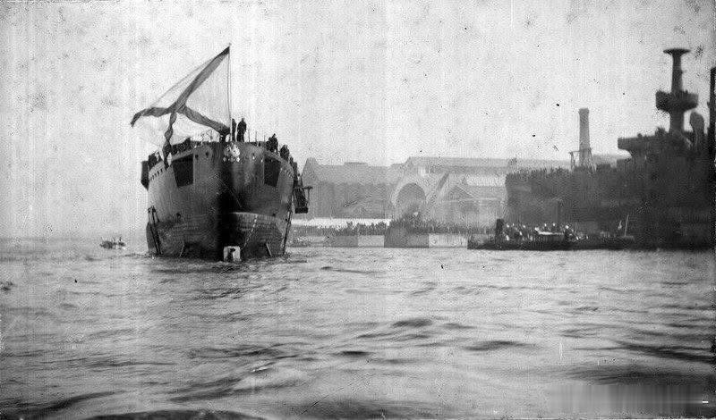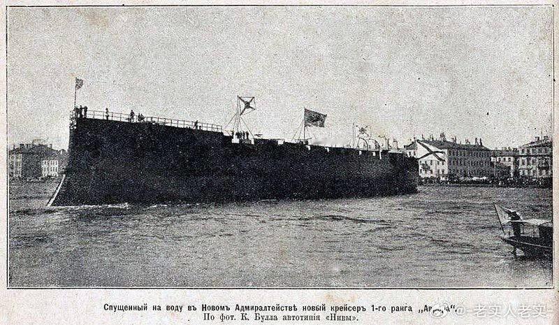 沙俄海军曙光女神号防护巡洋舰下水典礼照片,摄于1900年5月11日的圣彼得堡海军上将造船厂。图5可见左侧正在舾装的奥斯列亚维亚号二等战列舰。图6是完工后试航的她,摄于1903年6月,白色涂装加上流畅的线型十分亮眼军事历史全触达中外舰闻每天认识一件兵器