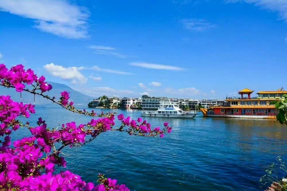 大理·双廊,温暖的阳光,温柔的花朵,轻抚的风,碧蓝的洱海...一切的一切,都让人如临梦境。
