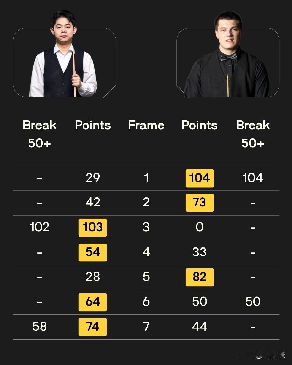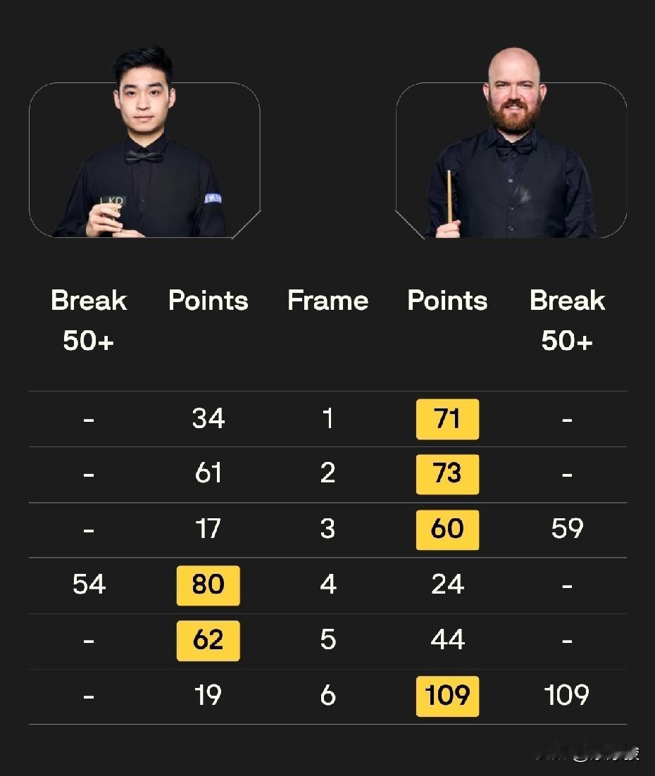 威尔士公开赛第一轮首个比赛日,中国军团4胜2负。江俊4-3逆转绝杀塞尔比,吴宜泽4-0零封梅尔滕斯,庞俊旭4-2战胜科瓦尔斯基,袁思俊4-3绝杀勒克莱尔,斯佳辉2-4不敌罗比·威廉姆斯,雷佩凡3-4被埃默里绝杀。刚刚,马克·艾伦2-4不敌大卫·格雷斯,爆冷出局。今晚明晨,赵心童、肖国栋等10名中国球员出战,其中两场德比。 江俊4-3逆转绝杀塞尔比,是第一轮首个比赛日最大的冷门。塞尔比3-1率先拿到赛点,其中打出两杆破百,之后被江俊3连鞭,其中第6局,江俊65-56惊险获胜。 前16选手斯佳辉2-4不敌罗比·威廉姆斯,算是爆了个小冷。斯佳辉状态一直起伏不定,而且对手实力并不弱,因此斯佳辉输球不算太意外。 袁思俊4-3逆转绝杀勒克莱尔。这场比赛打得很胶着,好几局比分都很接近。勒克莱尔最近状态很好,加上本赛季需要保级,比较神勇,3-1率先拿到赛点,但被袁思俊连下两局逆转绝杀。 雷佩凡3-4被威尔士本土选手埃默里绝杀,有点可惜。最关键的第6局小雷子没有拿下来,42-58被埃默里扳平。 中国球员中打得最酣畅淋漓的比赛是吴宜泽4-0零封梅尔滕斯。整场比赛,吴宜泽打出两杆破百、一杆70+,只让对手得到55分,不过第一局最关键,吴宜泽62-50险胜。 昨晚另一场中国球员的比赛,庞俊旭4-2击败科瓦尔斯基。 第一轮首个比赛日,福德2-4不敌奥唐纳,也算是爆了个小冷。 刚刚结束的一场比赛,排名96位的大卫·格雷斯4-2爆冷战胜艾伦。艾伦目前排名英国本土系列赛奖金榜第一位,他的出局,给排名第二的韦克林和第三的小司机带来希望。 最后一场比赛由卡特对麦克吉尔,这场比赛刚刚结束,卡特2-3落后扳平比分,决胜局领先36分,但被麦克吉尔的一杆高质量斯诺克难住,罚了很多分,最后解球漏球,3-4被绝杀。 今晚明晨威尔士公开赛第一轮第二个比赛日,10名中国球员出战,其中两场德比,具体时间和对阵如下: 18点: 肖国栋vs龙泽煌 常冰玉vs墨菲 21点: 赵心童vs范争一 周跃龙vs乌森巴赫 22点(接台): 张安达vs米切尔·曼恩 明天凌晨3点: 刘文炜vs希金斯 凌晨4点(接台): 刘宏宇vs凯伦·威尔逊 高阳vs宾汉姆。 中国球员,加油!