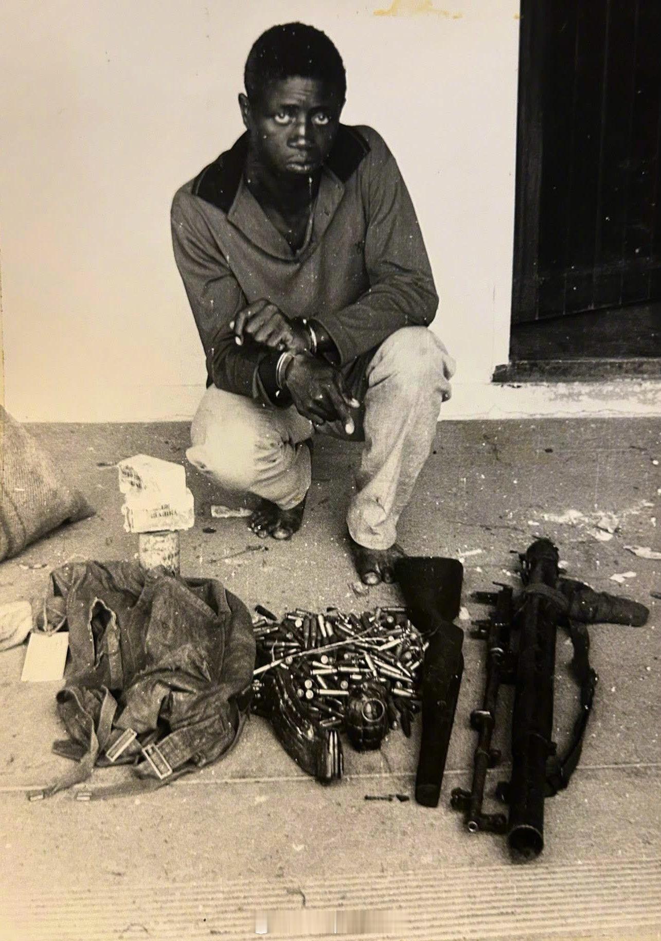 烽火问鼎计划照片中的历史 在罗得西亚捕获的左翼游击队战士及其装备,由英国南非警察部队(BSAP) 刑事侦查部(CID)摄影科于1970年拍摄。