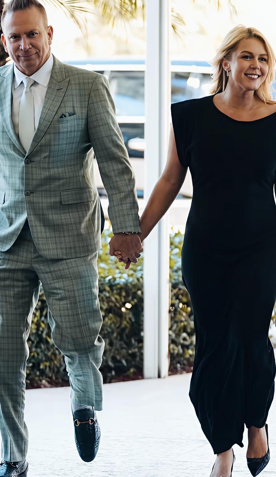 卡罗琳和丈夫看起是不是还挺有夫妻相啊? 两人相差这么大的年龄差,能在一起,是因为爱情呢?还是其他方面呢? 两人牵着手看起来是不是还挺恩爱啊?