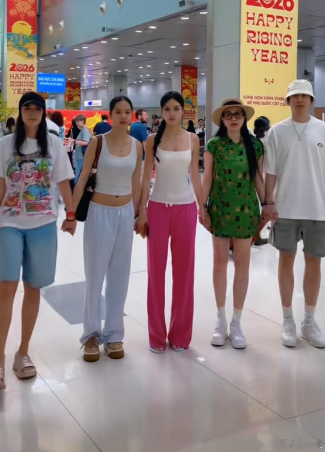 钟丽缇张伦硕带仨女儿海边度假,满屏都是腿,尤其是考拉,身材比例真真绝了。这三个