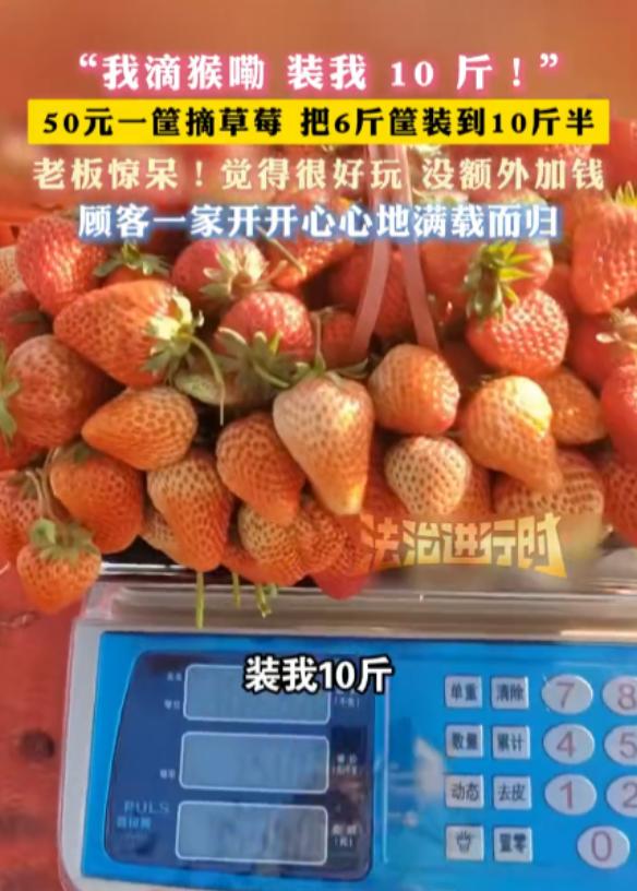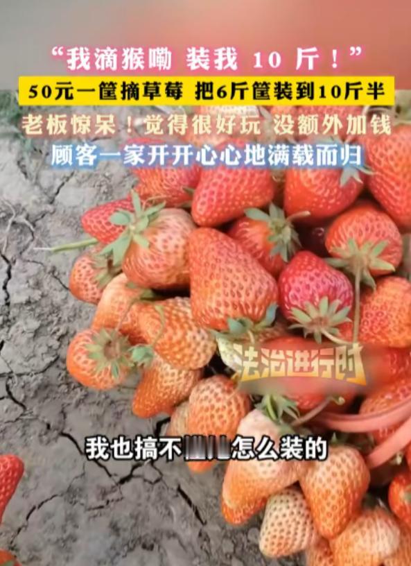 安徽临泉,一女子带着孩子们去摘草莓,老板说50元一篮子,万万没想到,女子竟在篮子中装了10斤草莓,在女子去结账时,老板都被惊呆了,这个篮子原本最多装6斤。   大家都知道,临泉黄岭镇那边遍地都是草莓大棚,每到这个季节,不少人都会带着孩子去体验采摘的乐趣,既能吃新鲜草莓,又能陪孩子玩。   那天这个女子也是,带着孩子们进了园,老板就跟她说好了,50块钱一篮子,摘多少装多少,只要能放进篮子里,就按50块钱算。   女子听了之后也没多问,就带着孩子们一边摘一边往篮子里装,估计是想着50块钱不限量,能多装就多装,怎么样都不亏。   孩子们也开心,专挑又大又红的摘,一个个往篮子里塞,女子也没控制,就一个劲地往满了装,到最后,篮子都快被撑变形了,她才停下,带着满满一篮子草莓去结账。   老板拿起篮子一称重,当场就愣住了,反复称了两遍,确认没看错——这一篮子草莓,竟然有10斤重。   老板坦言,他那个篮子,平时最多也就装6斤,就算使劲塞,撑死也就7斤,从来没见过有人能装10斤的,难怪他会被惊呆了。   其实这事说起来,也没有谁对谁错,更多的是一场误会,说白了,就是老板没提前说清楚,这个“一篮子”到底是按容量算,还是有隐性的重量限制,他以为大家都会正常装,不会这么极致,没想到女子会装这么多。   而女子这边,可能也是觉得,既然说好50元一篮,只要能装进去,就不算违规,所以才使劲往满了装,没多想其他的。   有人说女子太较真,故意占便宜,我觉得也不至于,带着孩子摘草莓,大概率就是图个开心,没想那么多弯弯绕绕,就是单纯觉得,能多装一点就多装一点。   毕竟50块钱,能让孩子多吃点新鲜草莓,也不算过分,也有人说老板考虑不周,应该提前说清楚重量上限,避免这种尴尬。   临泉这边的草莓,本身价格就不算贵,尤其是这个季节,草莓大量上市,批发价也很亲民,老板50元一篮,本来就没赚多少钱,要是真按10斤算,折算下来5块钱一斤,几乎就是保本甚至亏本了。   最后怎么解决的,没人细说,大概率是双方协商了一下,要么女子补了点差价,要么老板自认了,毕竟也不是什么大事,没必要闹得不愉快。   其实不管是做生意还是消费,多一句沟通就少一场尴尬,老板提前说清楚篮子的大概重量,消费者也适可而止,大家互相体谅一下,就能避免这种小插曲。   不过话说回来,这事也算是个小趣事,给大家提了个醒,以后去摘草莓,要是遇到这种“按篮收费”的,最好提前问清楚,省得最后闹得双方都尴尬。