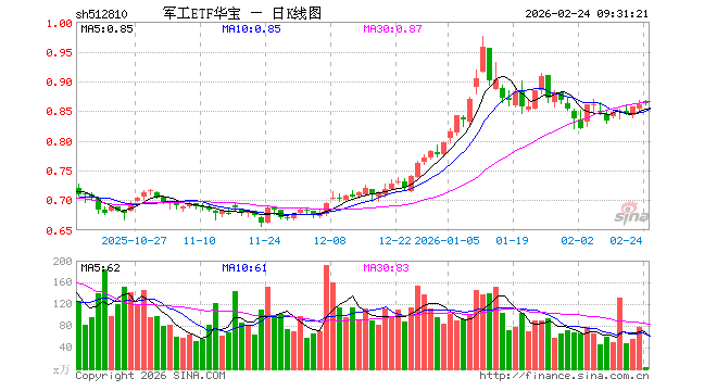 军工ETF华宝(512810)业绩比较基准为中证军工指数,管理人为华宝基金管理有限公司,基金经理为丰晨成,成立(2016-08-05)以来回报为71.41%,近一个月回报为-5.30%。