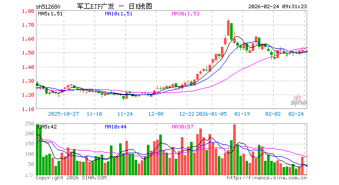 军工ETF广发(512680)业绩比较基准为中证军工指数收益率,管理人为广发基金管理有限公司,基金经理为霍华明,成立(2016-08-30)以来回报为51.58%,近一个月回报为-5.40%。