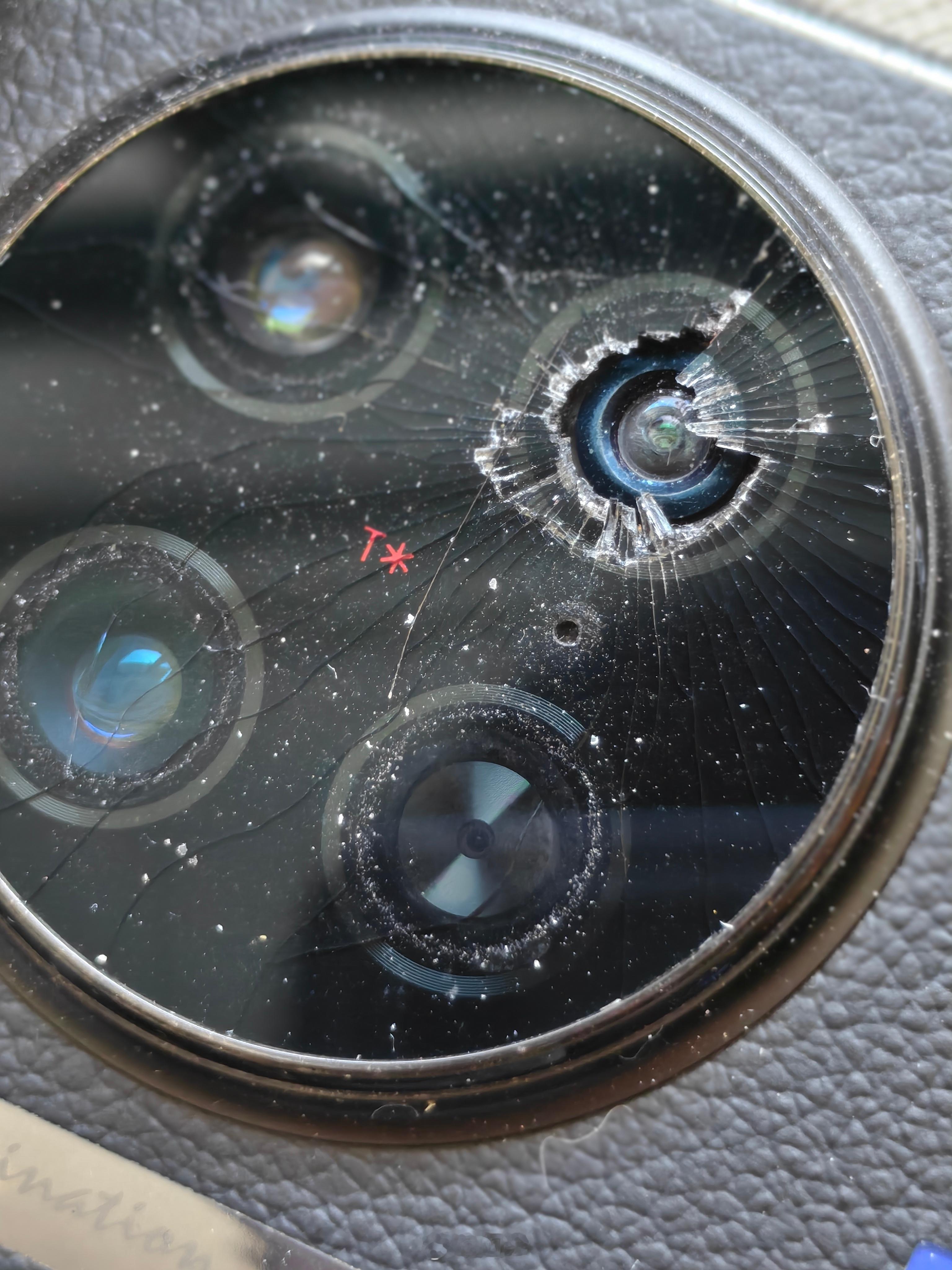 给爸妈清理下手机,发现相机镜头破成这样了,感觉是拯救了全世界吧