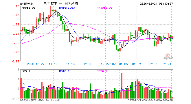 2月24日,电力ETF(159611)开盘涨0.29%,报1.027元。电力ETF(159611)重仓股方面,长江电力开盘涨0.50%,中国核电涨0.47%,三峡能源涨0.25%,国电电力涨0.43%,永泰能源涨1.23%,华能国际涨0.14%,国投电力涨0.16%,中国广核涨0.52%,上海电力涨0.74%,川投能源涨0.29%。