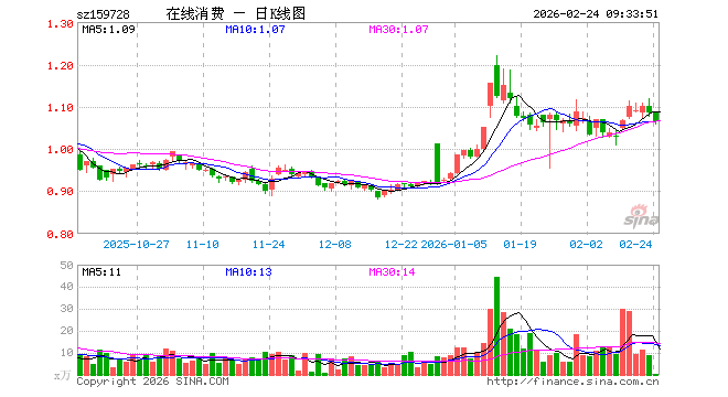2月24日,在线消费ETF南方(159728)开盘涨0.09%,报1.085元。在线消费ETF南方(159728)重仓股方面,科大讯飞开盘涨2.24%,歌尔股份涨1.15%,巨人网络跌0.05%,蓝色光标涨2.05%,恺英网络跌0.16%,昆仑万维涨1.67%,拓维信息涨0.84%,三七互娱涨1.11%,安克创新涨1.42%,光线传媒跌14.99%。