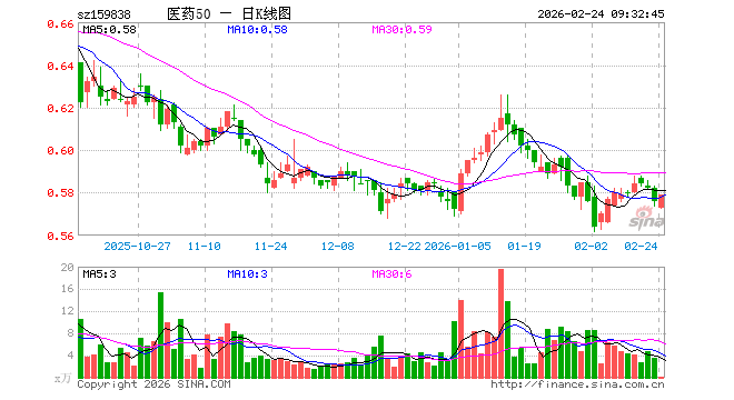 2月24日,医药50ETF博时(159838)开盘跌0.52%,报0.573元。医药50ETF博时(159838)重仓股方面,药明康德开盘涨1.72%,迈瑞医疗涨1.10%,恒瑞医药涨0.14%,联影医疗涨0.93%,爱尔眼科涨2.03%,新和成涨0.82%,华东医药涨0.00%,科伦药业涨0.60%,长春高新涨0.74%,康龙化成涨1.51%。