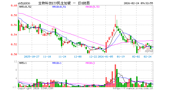 生物科技ETF民生加银(516930)业绩比较基准为中证生物科技主题指数收益率,管理人为民生加银基金管理有限公司,基金经理为周帅,成立(2021-08-05)以来回报为-49.03%,近一个月回报为-8.87%。