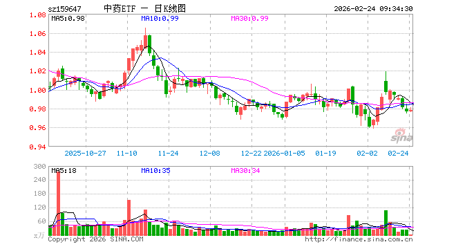 2月24日,中药ETF(159647)开盘涨0.00%,报0.977元。中药ETF(159647)重仓股方面,云南白药开盘跌0.02%,片仔癀涨0.63%,同仁堂涨0.46%,东阿阿胶涨0.36%,华润三九涨0.42%,吉林敖东涨0.43%,白云山涨0.44%,以岭药业跌0.06%,达仁堂涨0.49%,众生药业涨0.79%。
