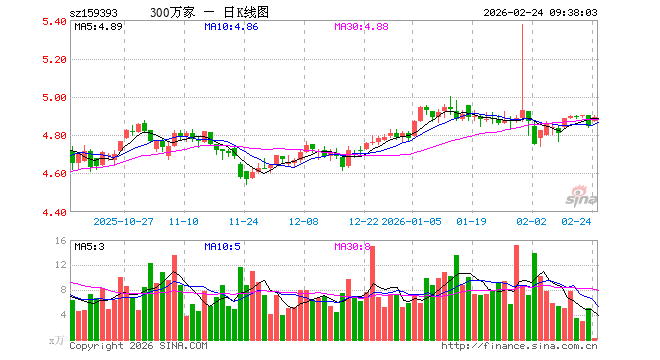 2月24日,沪深300ETF万家(159393)开盘涨0.50%,报4.871元。沪深300ETF万家(159393)重仓股方面,宁德时代开盘涨2.00%,贵州茅台涨2.40%,中国平安涨0.74%,中际旭创涨2.07%,紫金矿业涨4.53%,招商银行涨1.27%,新易盛涨0.52%,美的集团涨1.45%,兴业银行涨0.32%,长江电力涨0.50%。