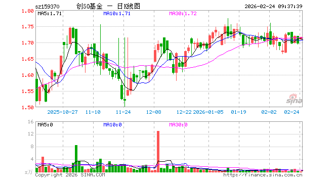2月24日,创50ETF工银(159370)开盘涨0.77%,报1.709元。创50ETF工银(159370)重仓股方面,宁德时代开盘涨2.00%,中际旭创涨2.07%,新易盛涨0.52%,东方财富涨0.54%,阳光电源涨1.74%,胜宏科技涨1.59%,汇川技术涨2.54%,迈瑞医疗涨1.10%,天孚通信涨5.27%,亿纬锂能涨1.80%。