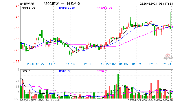 2月24日,A500ETF浦银(159376)开盘涨1.04%,报1.361元。A500ETF浦银(159376)重仓股方面,宁德时代开盘涨2.00%,贵州茅台涨2.40%,中国平安涨0.74%,中际旭创涨2.07%,紫金矿业涨4.53%,招商银行涨1.27%,新易盛涨0.52%,美的集团涨1.45%,兴业银行涨0.32%,长江电力涨0.50%。