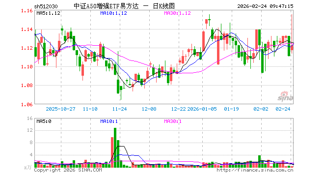 中证A50增强ETF易方达(512030)业绩比较基准为中证A50指数收益率,管理人为易方达基金管理有限公司,基金经理为郭杰,成立(2025-07-28)以来回报为11.20%,近一个月回报为-1.30%。