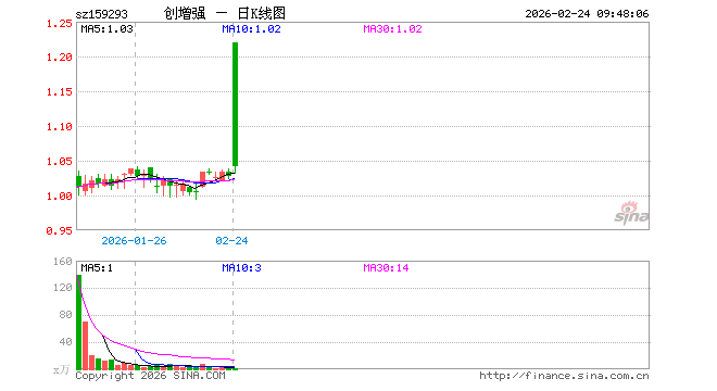 2月24日,创业板综增强ETF建信(159293)开盘涨18.79%,报1.220元。创业板综增强ETF建信(159293)重仓股方面,宁德时代开盘涨2.00%,中际旭创涨2.07%,新易盛涨0.52%,阳光电源涨1.74%,万辰集团涨0.87%,万达信息涨0.60%,中汽股份涨1.12%,卡莱特涨0.50%,巨人网络跌0.05%,同花顺涨0.27%。