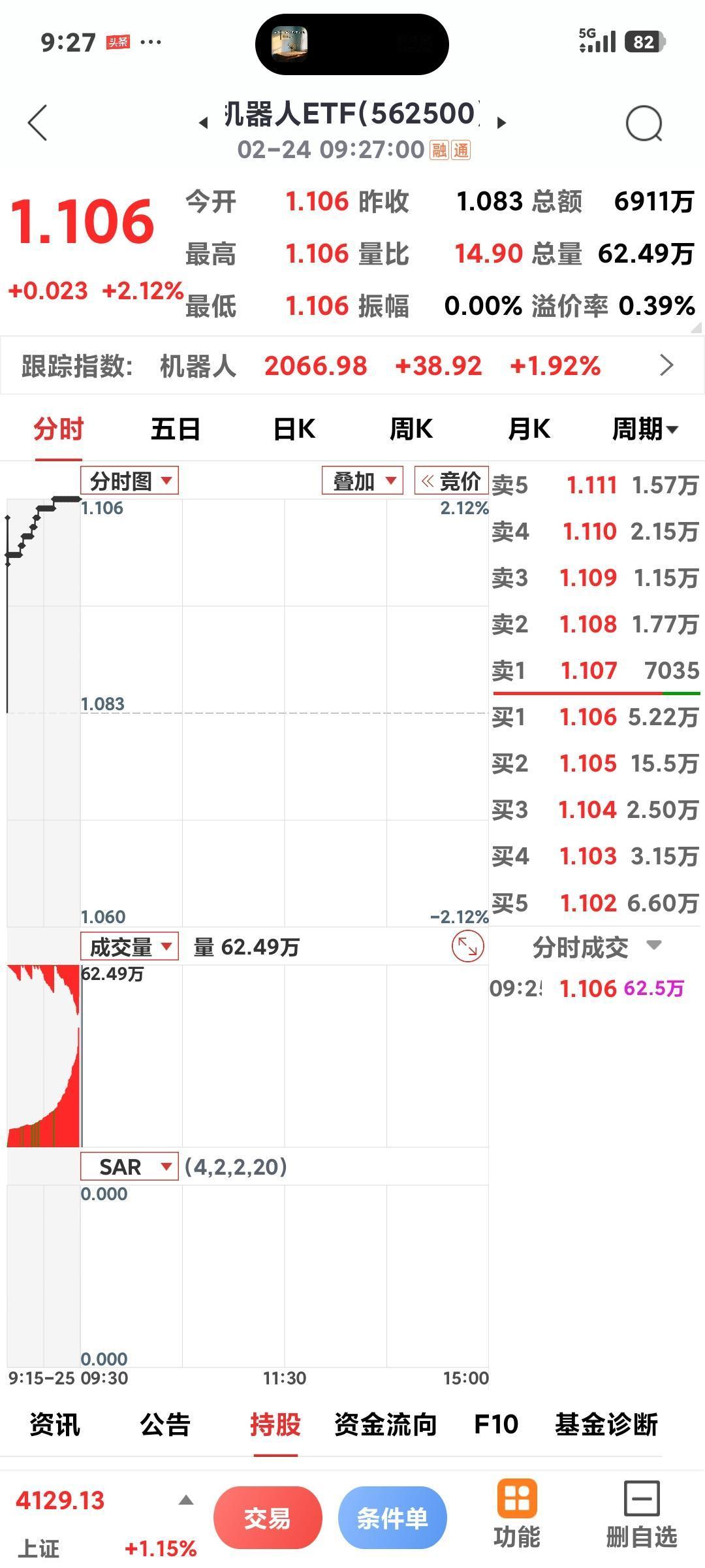 高开高开 沪指开盘直接杀到4129点,高开近50点,机器人估计会