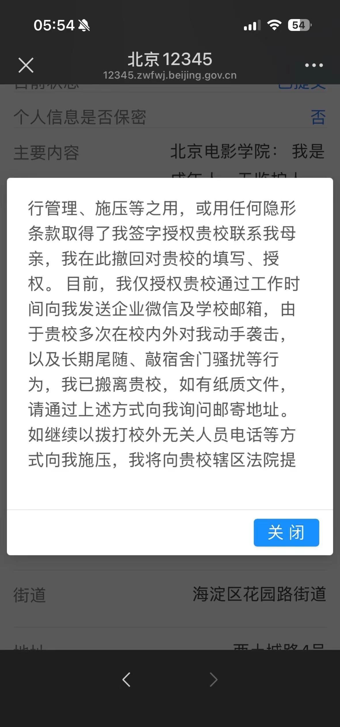 郑重告知北京电影学院:停止骚扰无关人员。电信诈骗防范 个人信息保护 北京电影学院 个人隐私