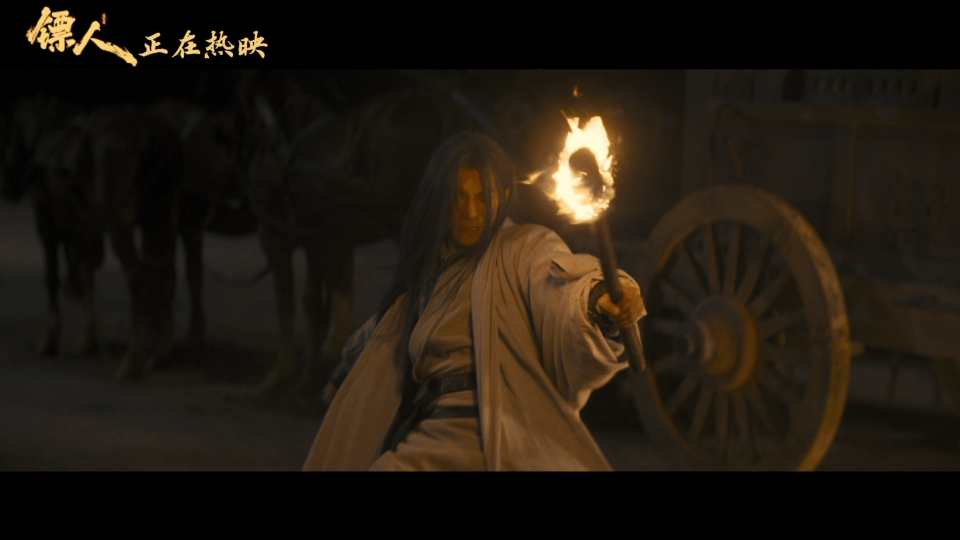 镖人打戏真火实拍吴京于适镖人火战打戏 竖说要当天下第一的时候,手里的火把烧得正旺