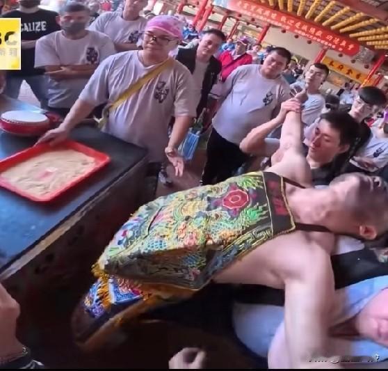 乩身后整个面相都变了,眼睛更大而有神,那么多乩童,关老爷忙得过来吗? 女孩也就认了,应该给穿个衣服,怎么还脱呢 这吊带和关公格格不入!关公没这么开放吧!关公是男的,怎么变成女的? 妈祖是女,怎么又变成男的?个人认为这只是一种街头艺术,和花车游行,跳街舞,磕长头一样。