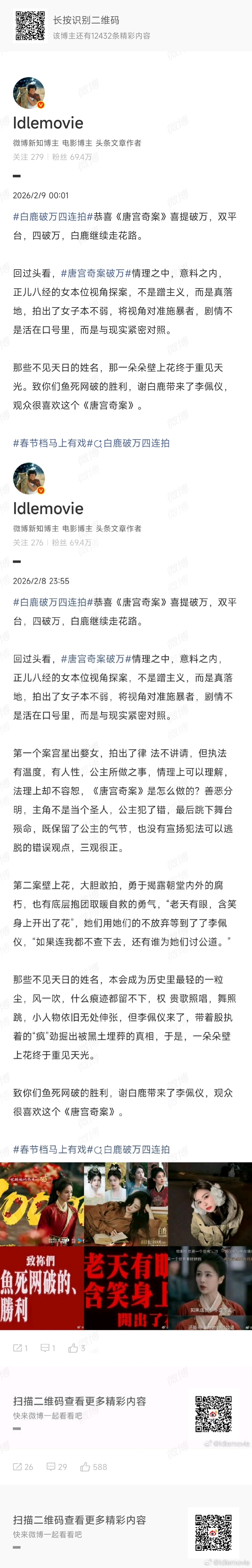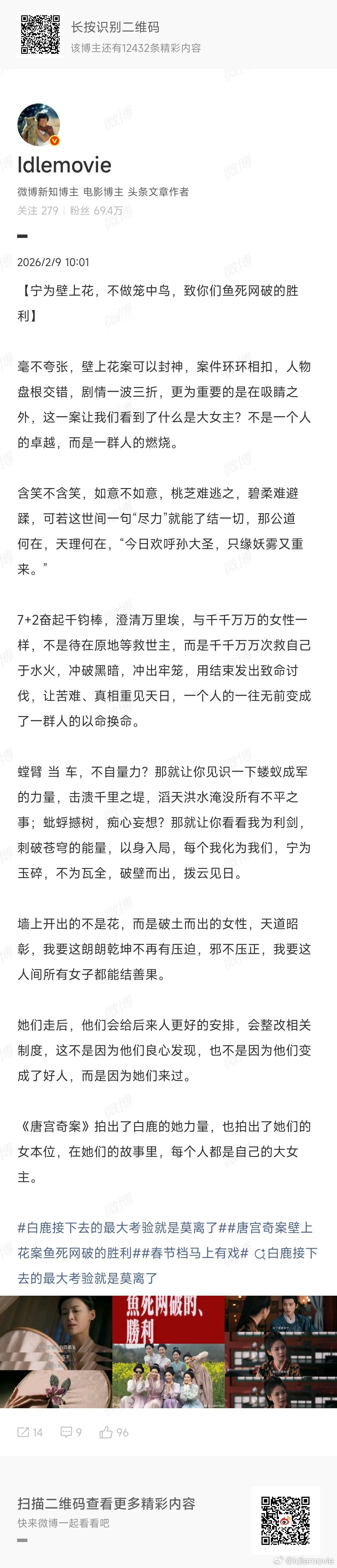 从《唐宫奇案》开播到完结,写了16篇长剧评,归纳在这,大家N刷时可以看看,下次,我们与白鹿不见不散。