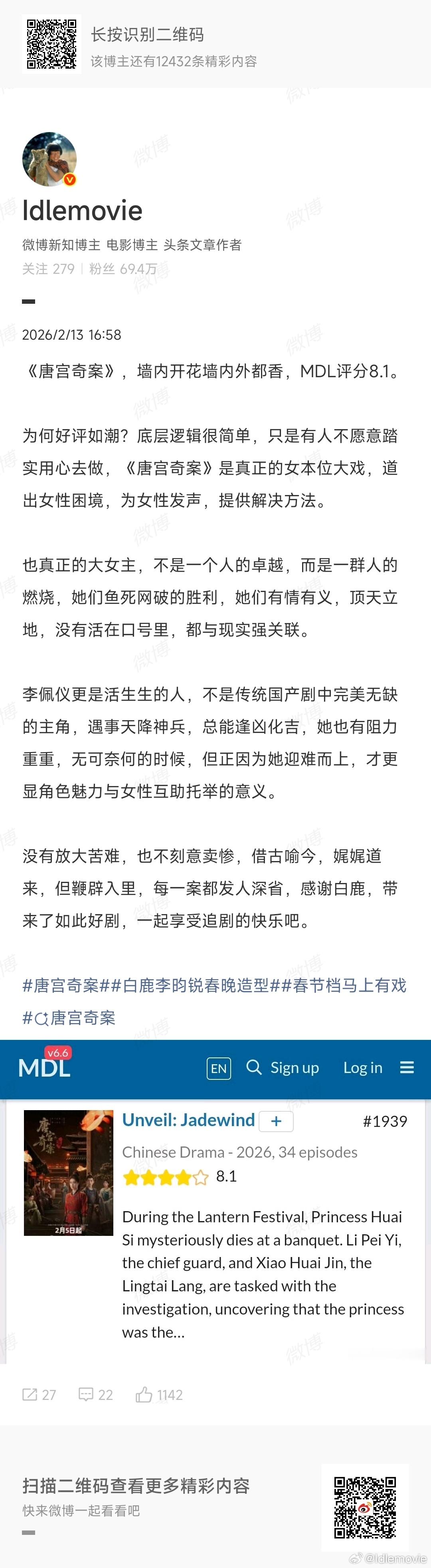 从《唐宫奇案》开播到完结,写了16篇长剧评,归纳在这,大家N刷时可以看看,下次,