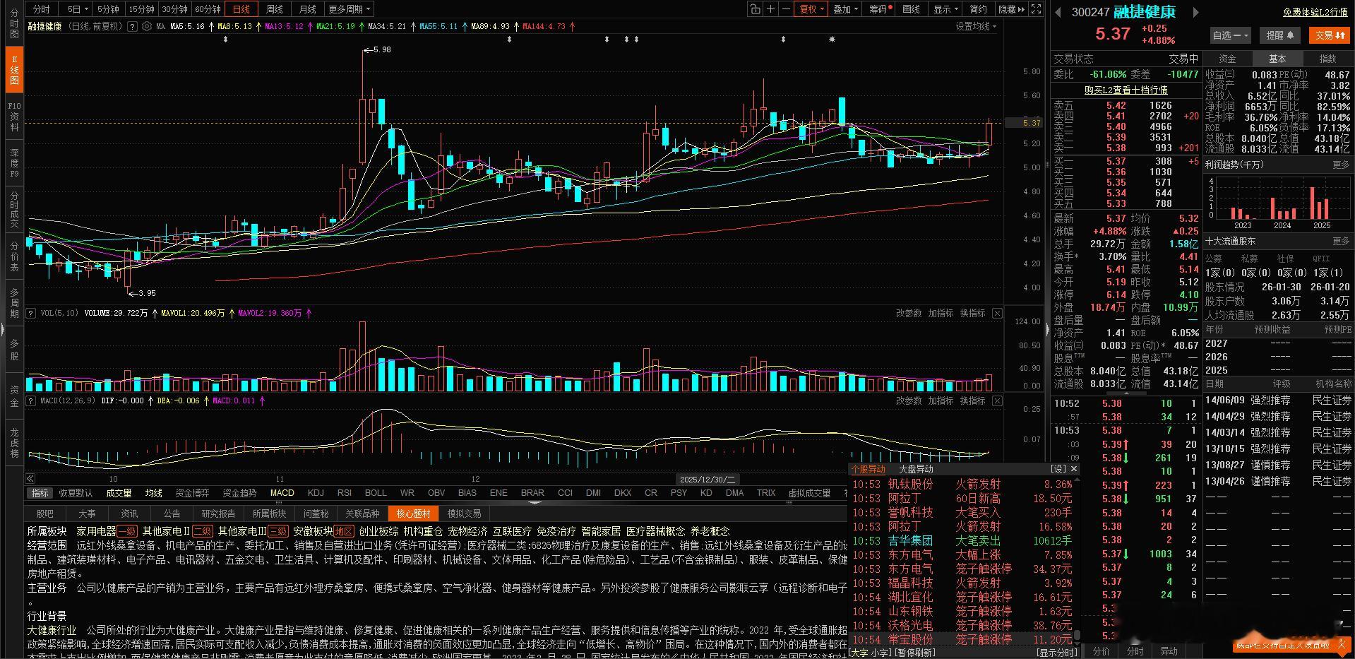 回踩后拉升,看高一下$融捷健康 sz300247$