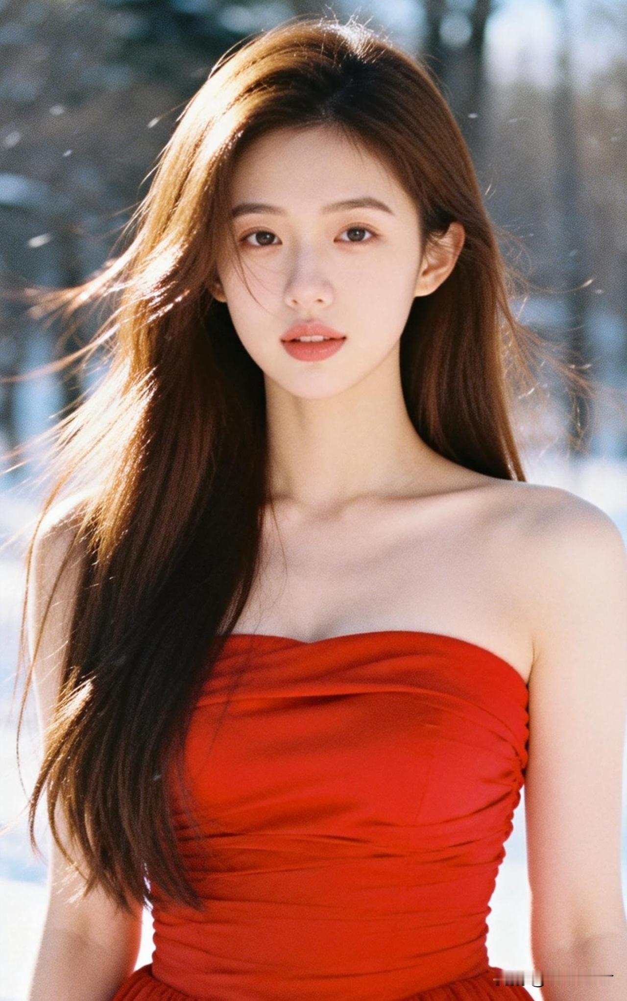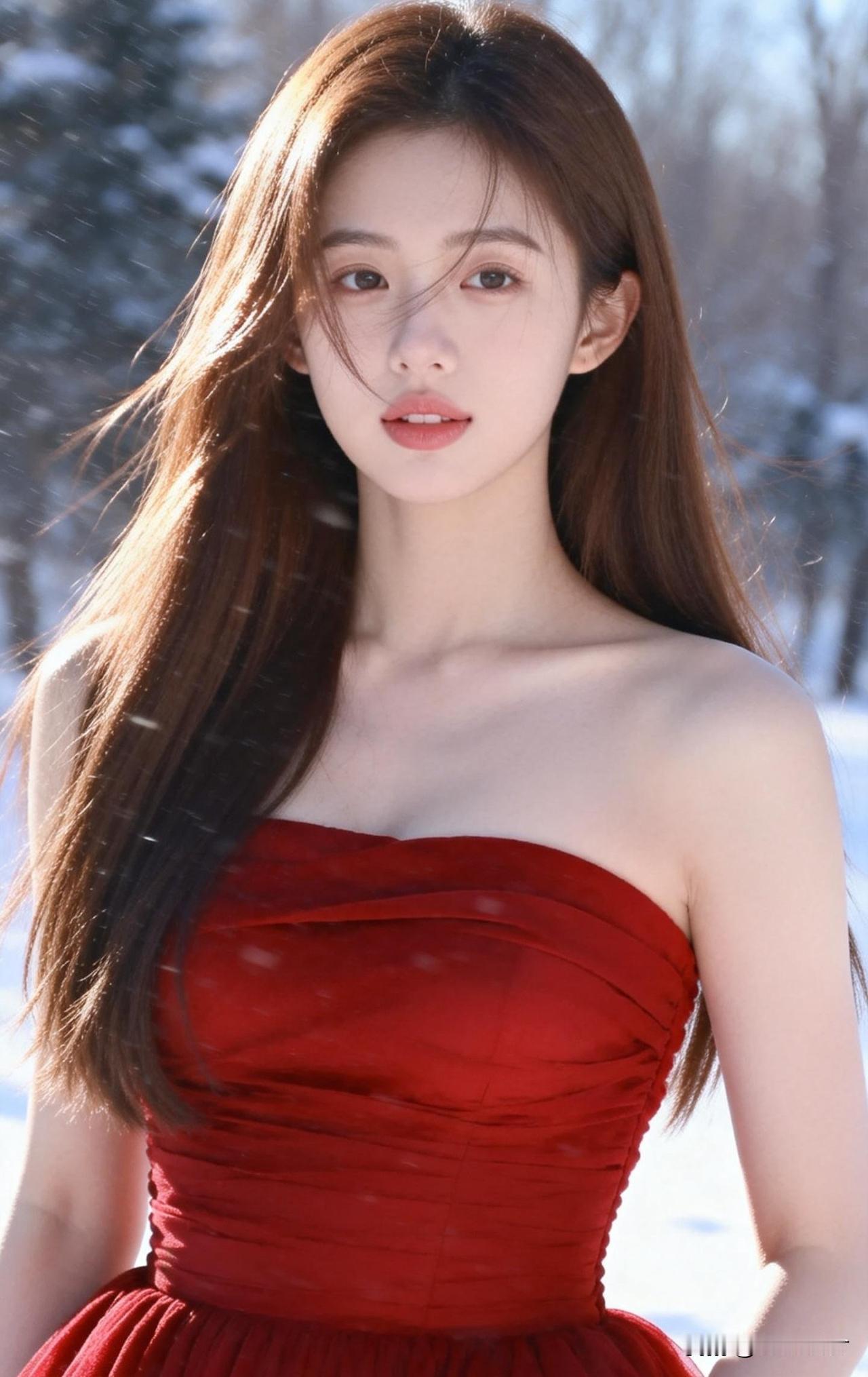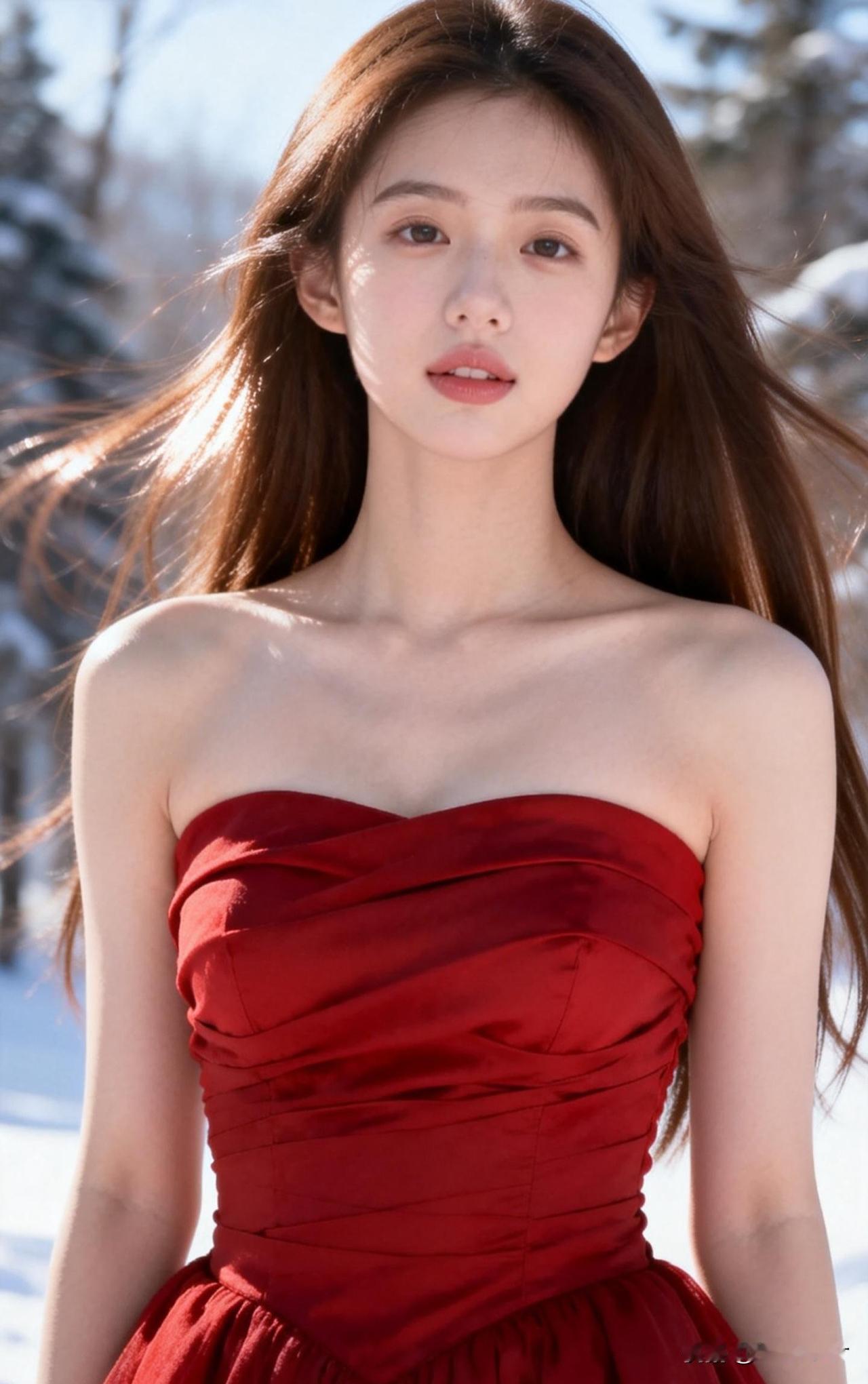 冬日红裙少女,雪地里的浪漫与优雅。