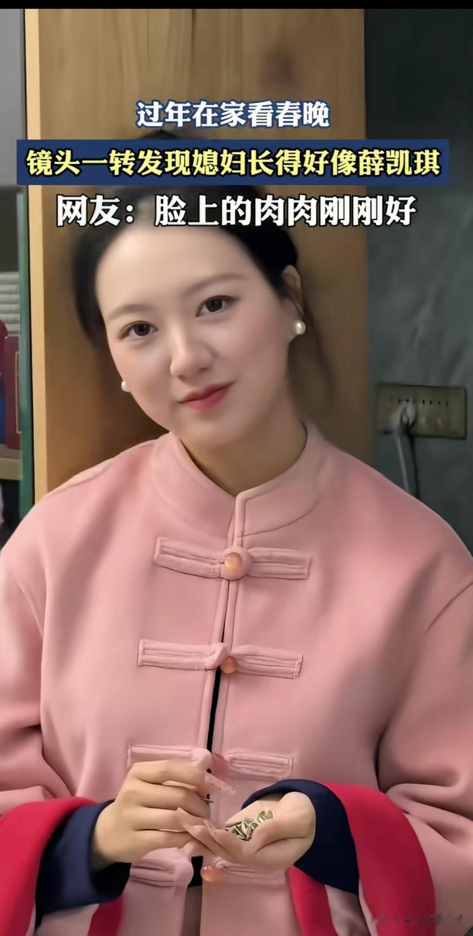 男子春节在家看春晚, 看到春晚上的美女薛凯琪, 哈喇子流了一地, 结果回头一看,自己的媳妇儿, 这么像薛凯琪, 突然就不看电视了, 一直盯着自己媳妇儿看, 媳妇儿也被他盯的不好意思了, 莞尔一笑很倾城, 你还别说,真的像, 除了有点儿圆润以外, 真的还是很漂亮的, 娶到这样的媳妇儿也是他的运气, 怪不得他要娶自己媳妇儿, 现在怀疑他就是为了找个薛凯琪的替代品,大家觉得他的媳妇儿像不像明星薛凯琪? 薛凯琪 薛凯琪身材 薛凯琪名场面 薛凯琪巡演造型