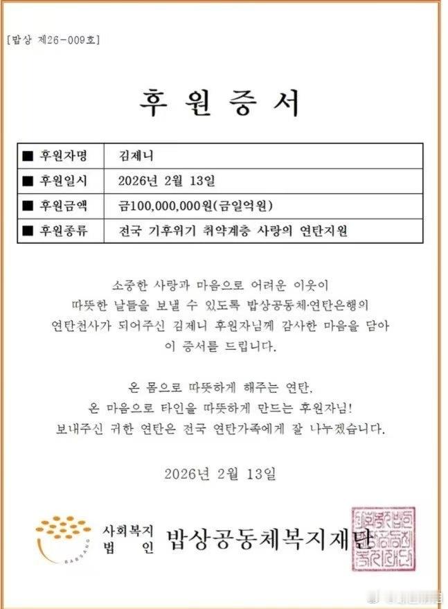 JENNIE捐赠了1亿韩元JENNIE捐赠1亿韩元给需要煤球的老年人JENNIE真好