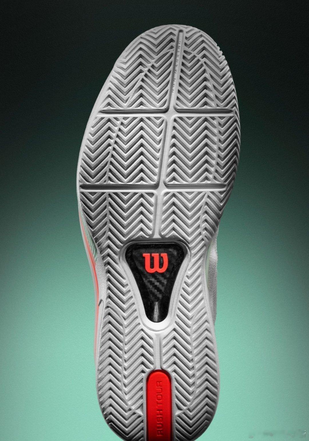 Wilson 全新推出的 Rush 5 Tour 正是为此而生。中底搭载 PEBA 超临界发泡材料,提供轻盈脚感和高效能量回弹;同时内置 SPEED CARBON FORTYFIVE 碳纤维板,增强抗扭刚性与蹬地推进力,帮助球员在快速启动和变向中保持稳定。