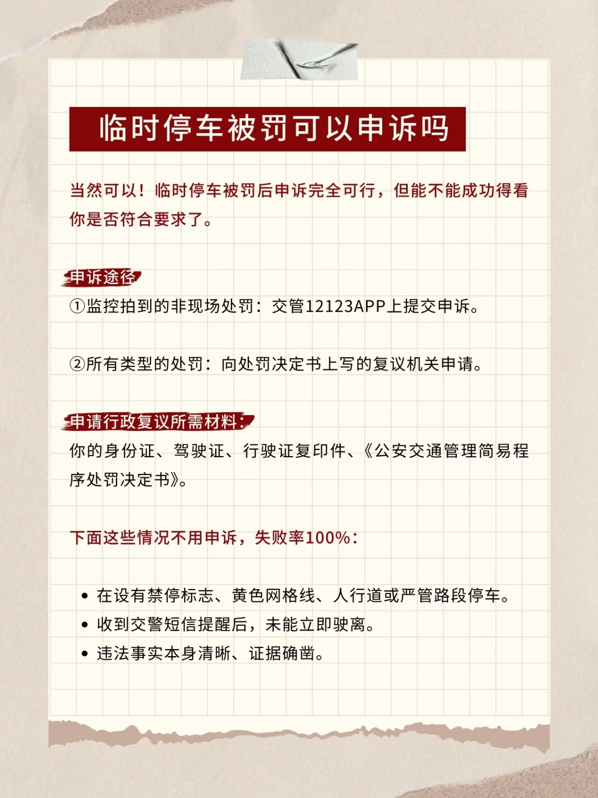 临时停车被罚了?别急着交钱,先看符不符合申诉条件!申诉渠道:✅电子抓拍:交管12123APP在线申诉。✅所有罚单:收到决定书60天内,可申请行政复议。申诉能成功的情况:证据有误:车根本没停在那!罚单信息错了。程序违法:只有辅警单独贴条(没正式交警带)。真有急事:爆胎、家人突发疾病等,记得留证据。首违警告:很多地方有政策,半年无违章可免罚。下面这些理由基本没用,不用去申诉了❌在禁停标线、网格线、人行道停车。❌收到提醒短信还不开走。大v聊车汽车