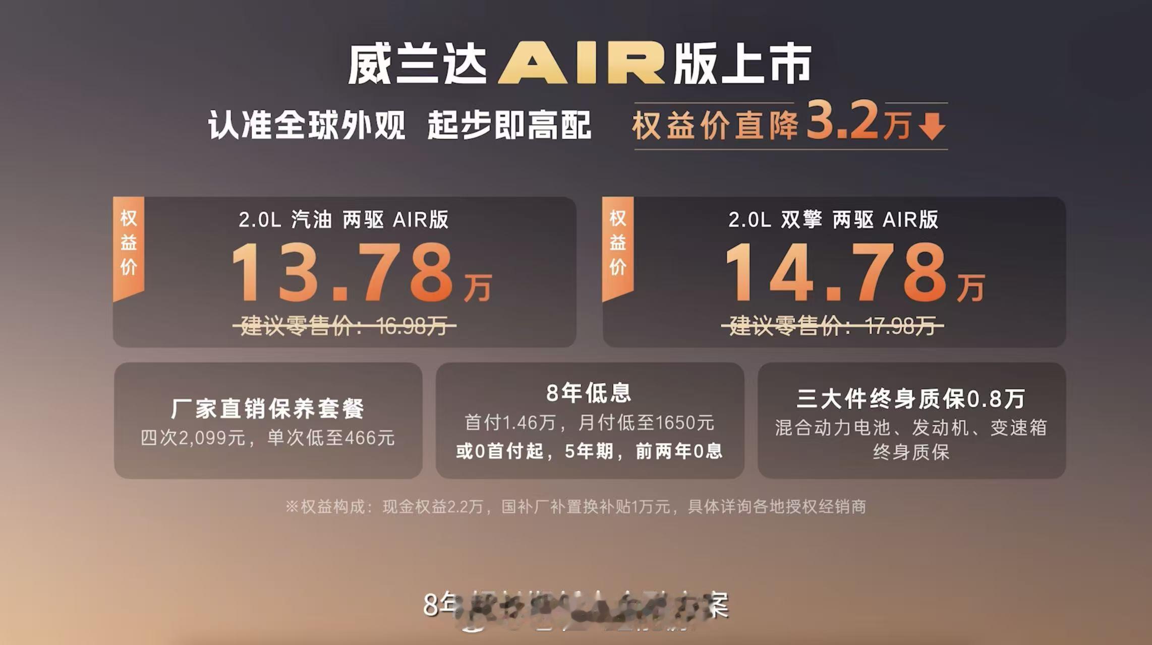 配置,价格,品牌,现代选车三要素,这次广汽丰田把握住了威兰达air版上市13.78万起大v聊车