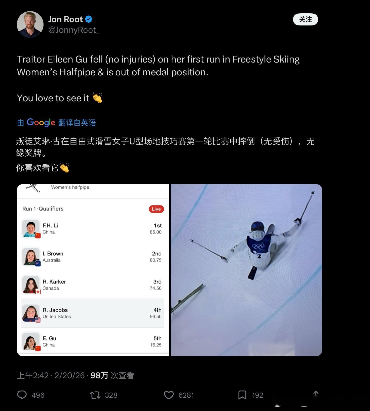 好吧谷爱凌晋级了,但祈祷她别得奖。