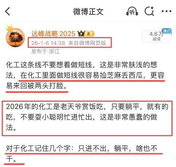 早盘开盘的时候,我说今天大概率是大幅高开,然后低走,最后盘中被拉起。后来早盘的走势也基本上验证这个判断。早盘油气开采,化工,各种金属等涨幅领先,这里面我要再次提一下化工和石油,尤其是化工,从去年开始我就反反复复地说,2026会是一个化工大年,不管是黑色系还是其余化工,都将迎来一轮大行情。