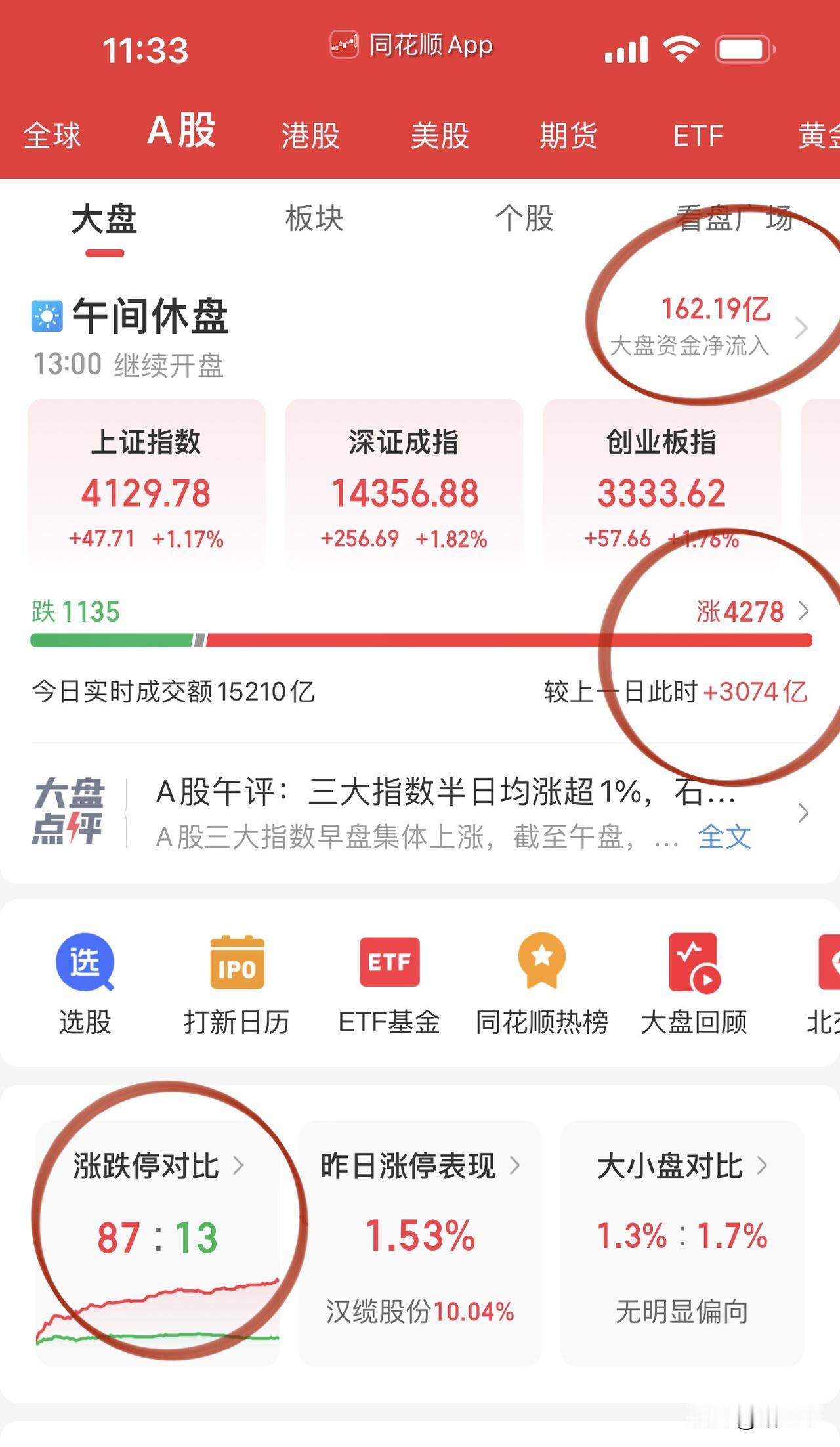 午评,开门红呀红四方! 普涨的格局, 实在没有什么可点评的, 天孚通信保留账户的收益超4倍了! 影视传媒虽然大跌但和多数股民关系不大吧, 三千关注的不差呀, 昆仑万维临近午盘大阳线拉起, 首都在线和优刻得也可圈可点。 油气股和欧线集运大涨, 和多数人关系也不大吧, 主战场在期货市场! 消费医药是真的弱, 中国中免跌停, 贵州茅台和五粮液春节动销数据最好, 但节前贵州茅台已经兑现了, 早盘高开低走伤士气! 机器人开盘前有聊到, 2026年量产规模太小了, 一个大高开后卧龙电驱、绿的谐波窜稀了! 电网设备强者恒强, 四方股份、特变电工、思源电气、金盘科技牛气冲天呀; 光伏方向节前三千挖掘的, 石英坩埚龙头石英股份临近午盘一度涨停。 …