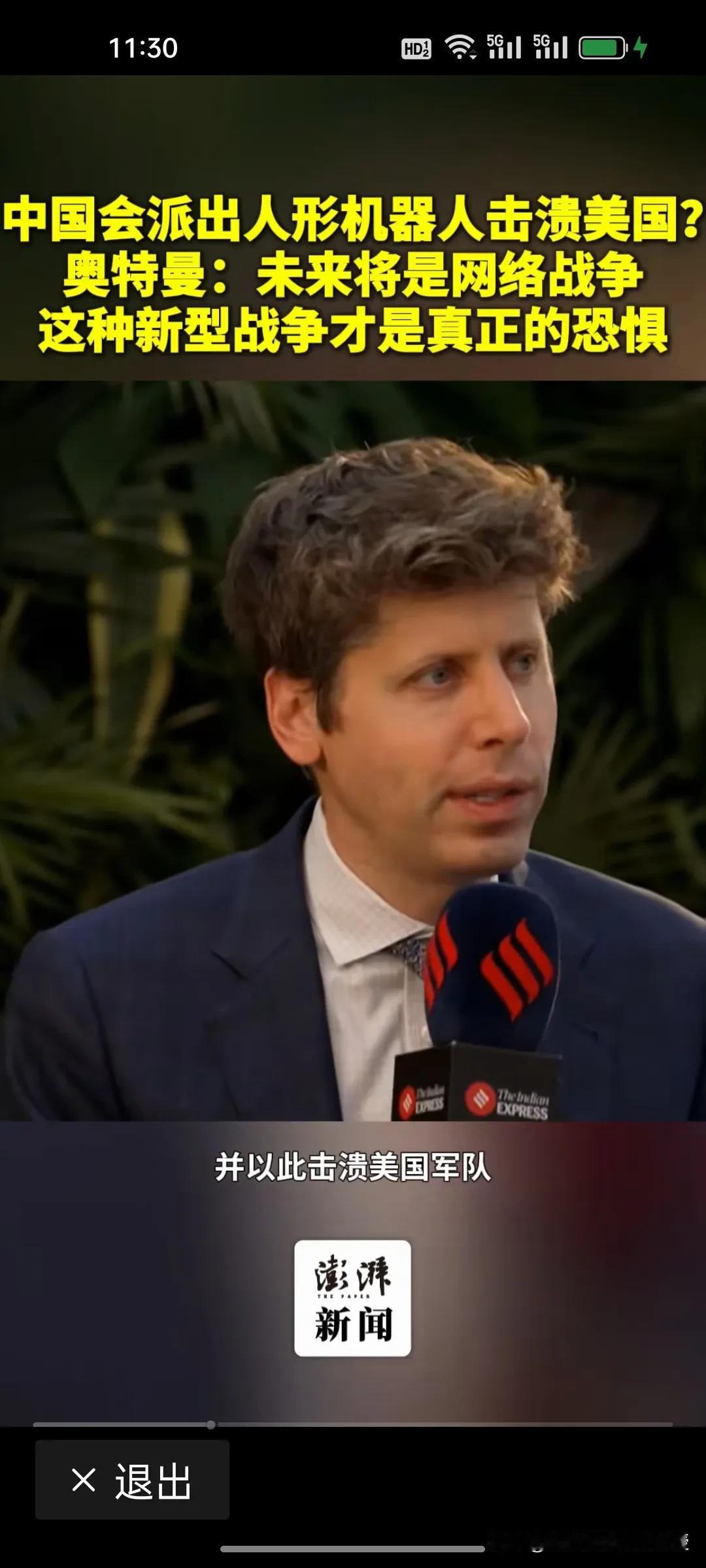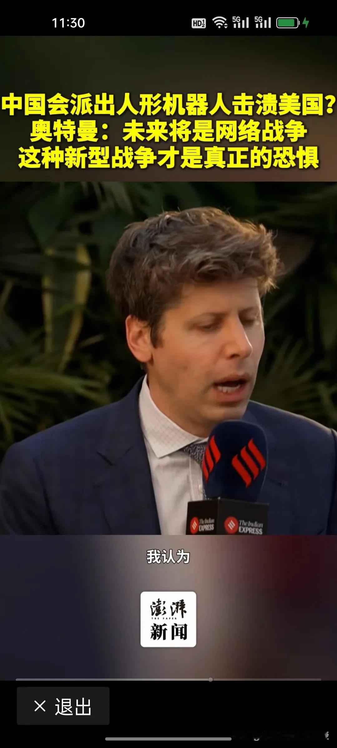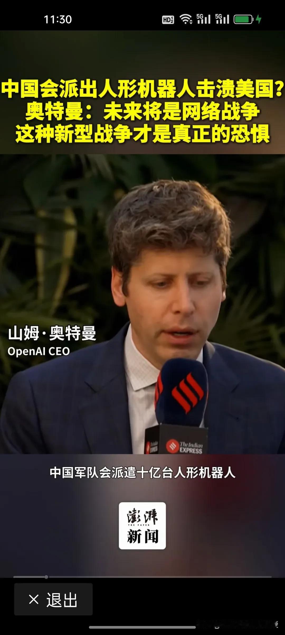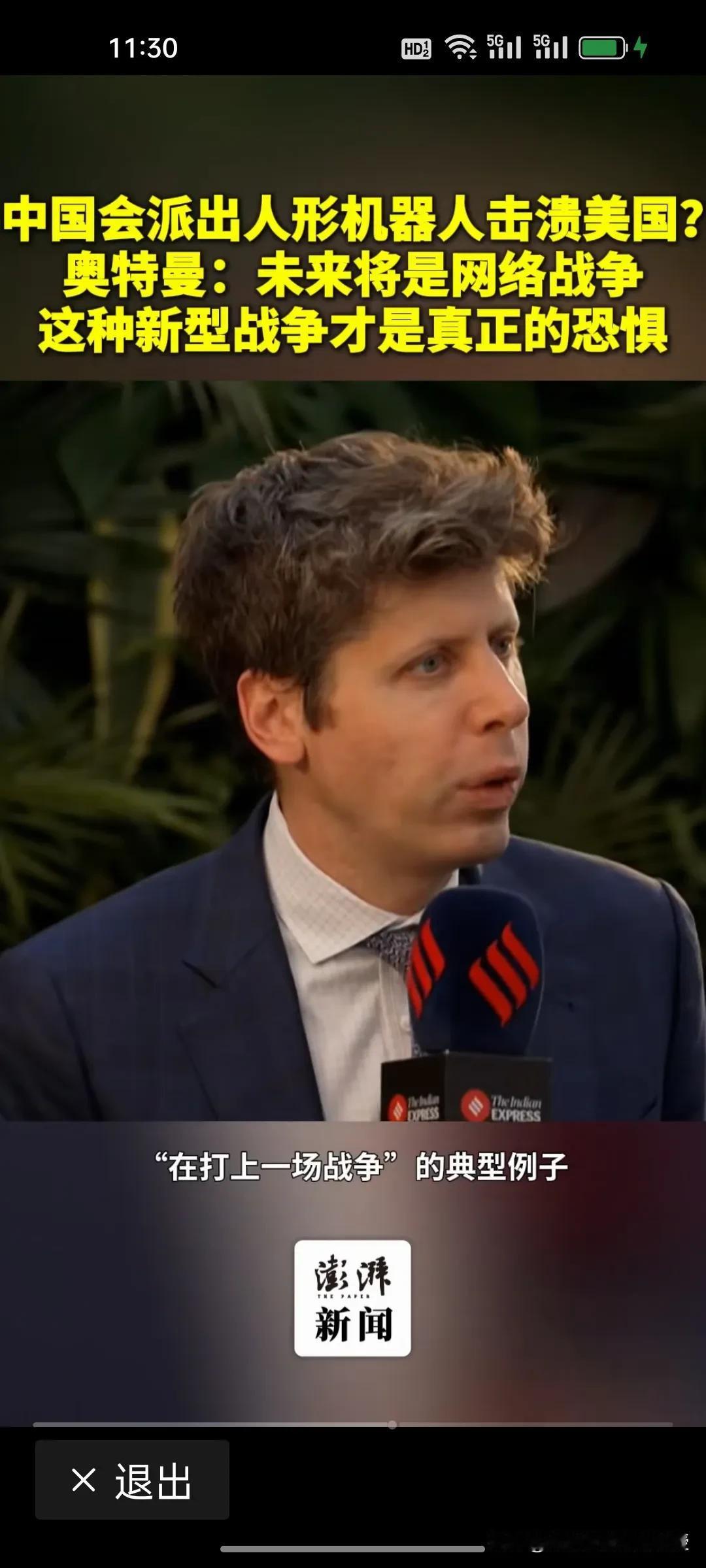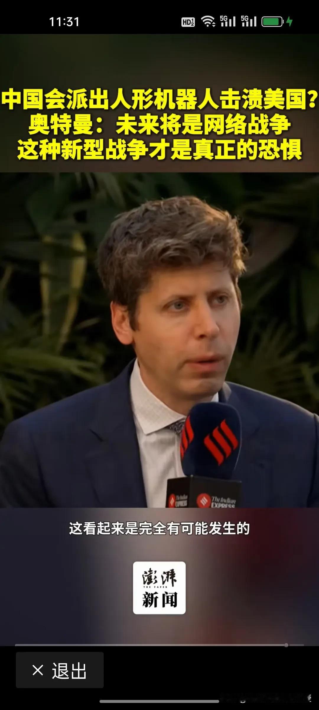 被春晚宇树机器人吓破胆?OpenAI CEO奥特曼预测:中国十亿人形机器人会击溃美军,真正的恐惧是网络战争。 近期,OpenAI CEO奥特曼在印度受访时,被问到“中国会派出人形机器人击溃美国吗”,他竟直言“这看起来完全有可能发生”,还危言耸听地声称“中国军队会派遣十亿台人形机器人穿过街道击溃美军”。 但他话锋一转,又认为真正的恐惧并非机器人,而是互联网上的新型战争——通过网络影响民众、入侵关键基础设施,这种无硝烟的对抗才是最可怕的。 显然,春晚宇树机器人的惊艳武术表演,让这位AI大佬对中国科技实力产生了过度联想。他的发声带有对中国智造崛起速度如此之快的震撼,完全出乎他的意料。不过,他对网络战争的警示,也戳中了未来大国博弈的核心痛点。