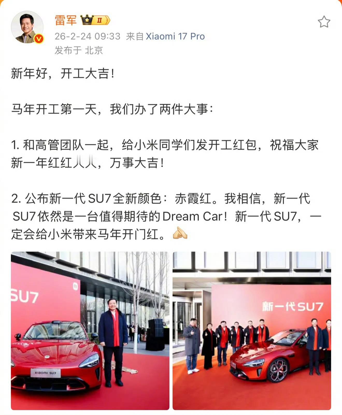 开年就开卷新小米SU7又出个新颜色:赤霞红 广州