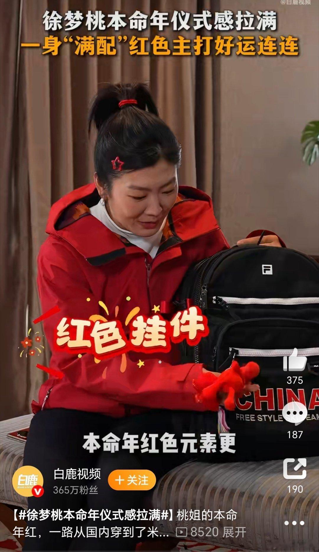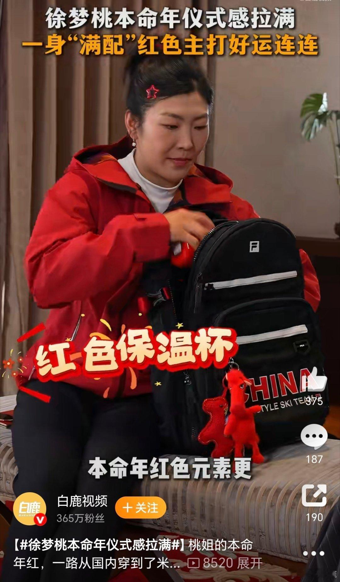 中国人本命年有多爱红色刚刷到新闻,今年是奥运冠军徐梦桃的本命年,她本命年仪式感拉满一身“”满配”红色。
