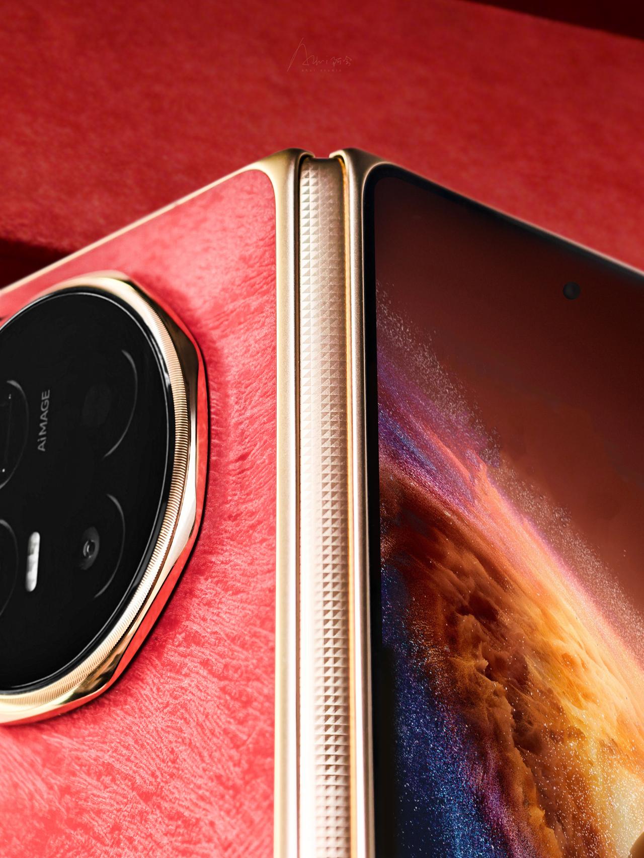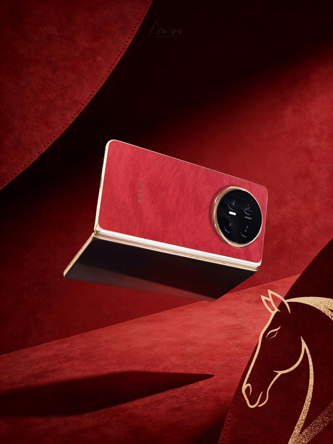 看到一组荣耀Magic V6新一代大折叠的实拍外观图, 这一代主打的红色,搭配金