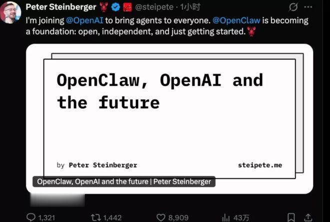 而OpenClaw的创造者PeterSteinberger?他已经加入了OpenAI,并表示正在优先构建更完善的安全机制。